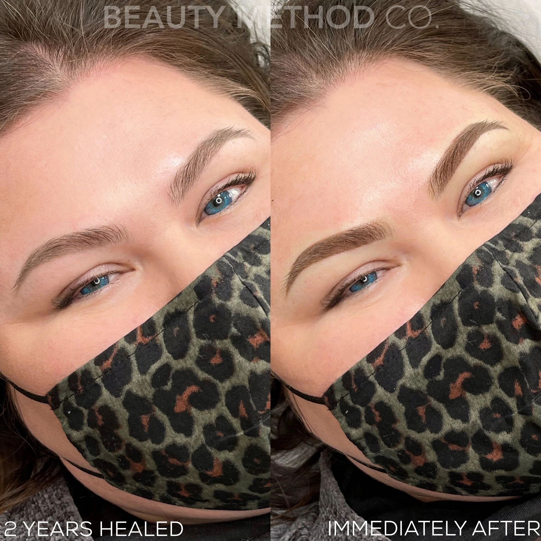 This service is for those who have had previous microblading / powder brows that have faded red/blue/green/purple. The former color will need to be corrected and neutralized to a more desirable color before a new pigment and shape can be deposited. Old brows must be faded 70-80%. Additional sessions may be necessary to achieve desired results.
